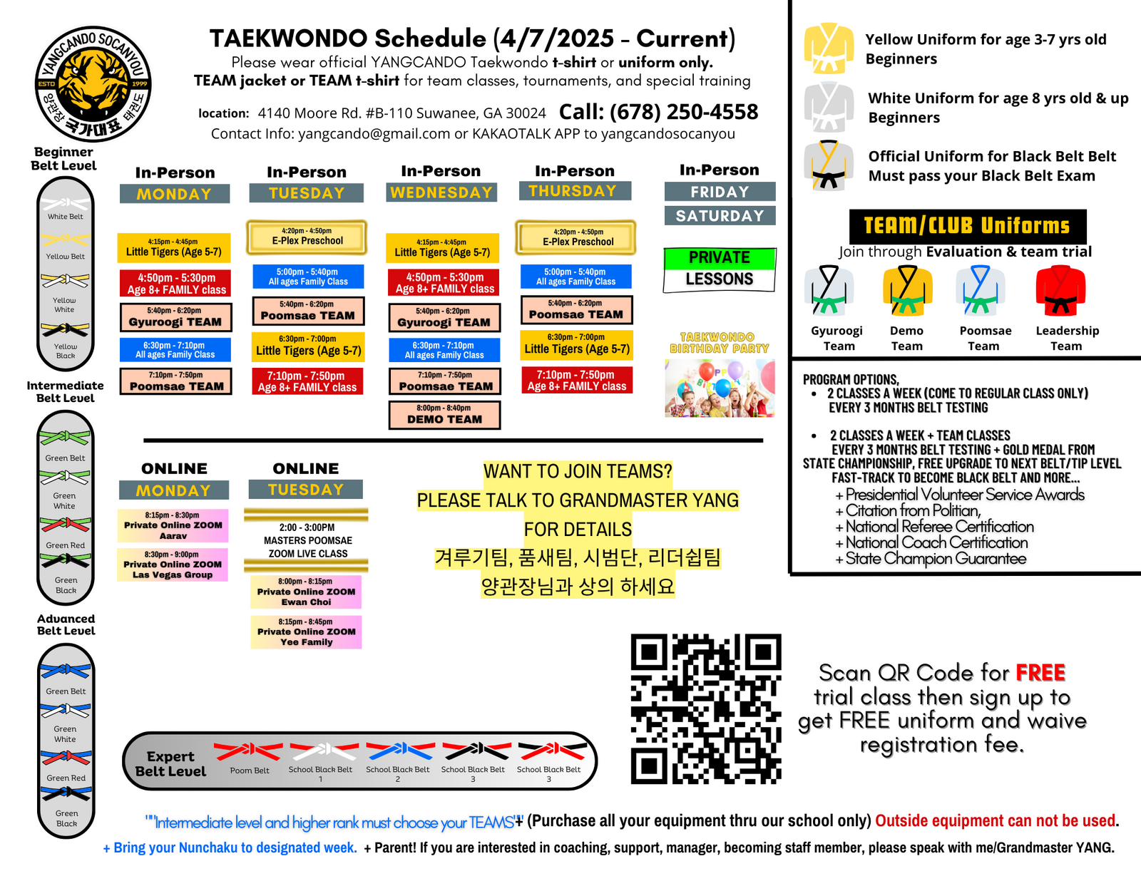 Check out the most frequently asked questions about YANGCANDO TAEKWONDO.